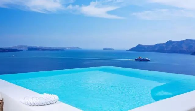 來到希臘必去的圣托里尼島,這個極具幾何造型的無邊泳池,成為游客們來到這里必須要感受的體驗之一!在無邊泳池中暢游,能看見最美的夕陽,水天一色的海洋,還有浪漫的白色建筑。