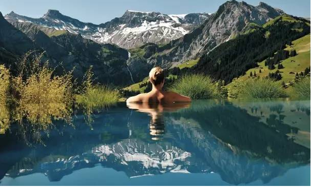 瑞士作為滑雪勝地,慕名前往的人很多,在冰天雪地的室外泡一場溫泉,看著阿爾卑斯山脈,感覺暢快又自然!